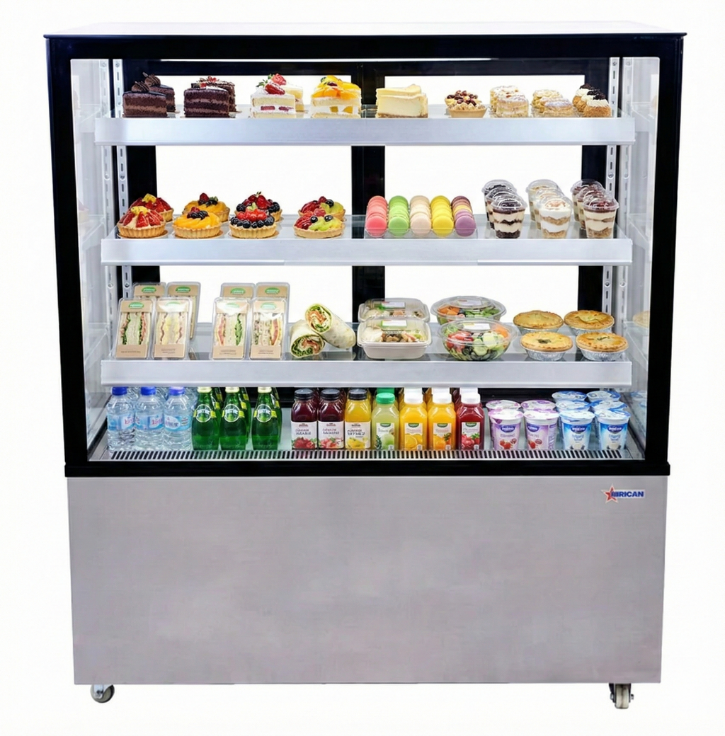 - Omcan’s Square Glass Floor Refrigerated Display Case provides an economical solution for displaying your products.